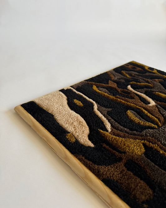Les écorces d’arbres sont une source infinie d’inspiration, offrant une richesse de textures, de couleurs et de motifs. Chaque tapis que je crée rend hommage à ces enveloppes naturelles qui racontent l’histoire du temps et des éléments.